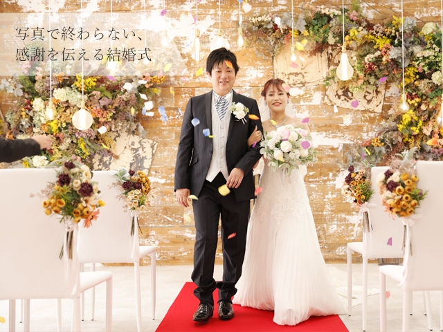 フォトウェディングの撮影だけで終わるのではなく、ウェディングドレスを着て、煌びやかなヘアセットとメイクをしたまま、あなたの大切な人に「ありがとう」を伝えませんか?